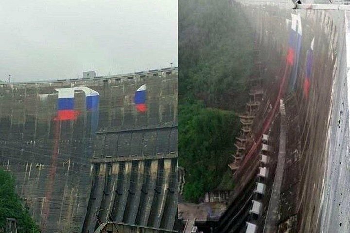 Полукилометровые буквы «РОССИЯ» появились на СШГЭС
