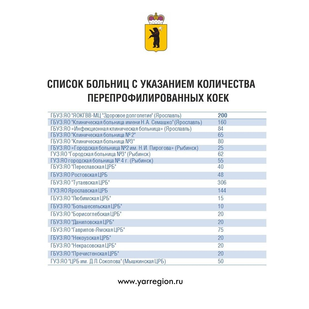 К сожалению, ситуация с ковидом на территории Ярославской области нестабильна. Ежедневная статистика показывает постепенный рост заболевших. В связи с этим в больницах города и области встала проблема нехватки больничных коек для лечения ковид - больных. Департамент здравоохранения и фармации принял решение о выделении дополнительных коечных мест в больницах региона: