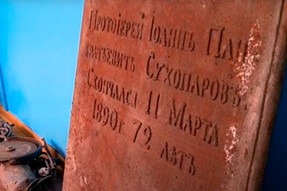 Рабочие нашли плиту на улице Алтайской и после очистки увидели на ней имя протоиерея Ивана Панкратьевича Сухопарова и дату его смерти — 1890 год. Позже удалось выяснить, что мужчина почти 40 лет прослужил в местной церкви и был награжден орденом святой Анны. Среди других археологических находок строители называют осколки керамики, посуду и предметы быта.