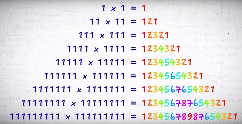 Интересный расклад цифр, если понаблюдать за числами, то можно научиться все математические действия решать в голове.