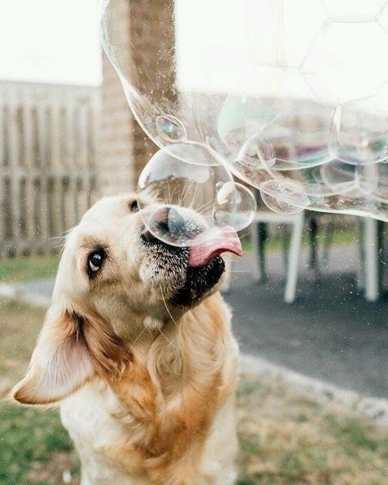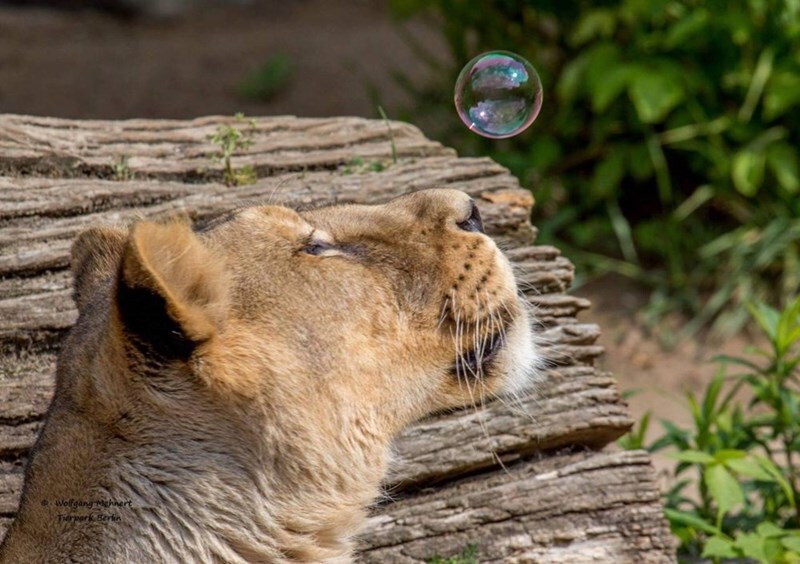 Животных в кадре не смогут переиграть даже дети. Какая непосредственность восприятия, естественность и простота! Лично у меня словосочетание "мыльный пузырь" не вызывает никаких ассоциаций, но, глядя на эти милые фотки, вспоминаешь и такую детскую забаву.