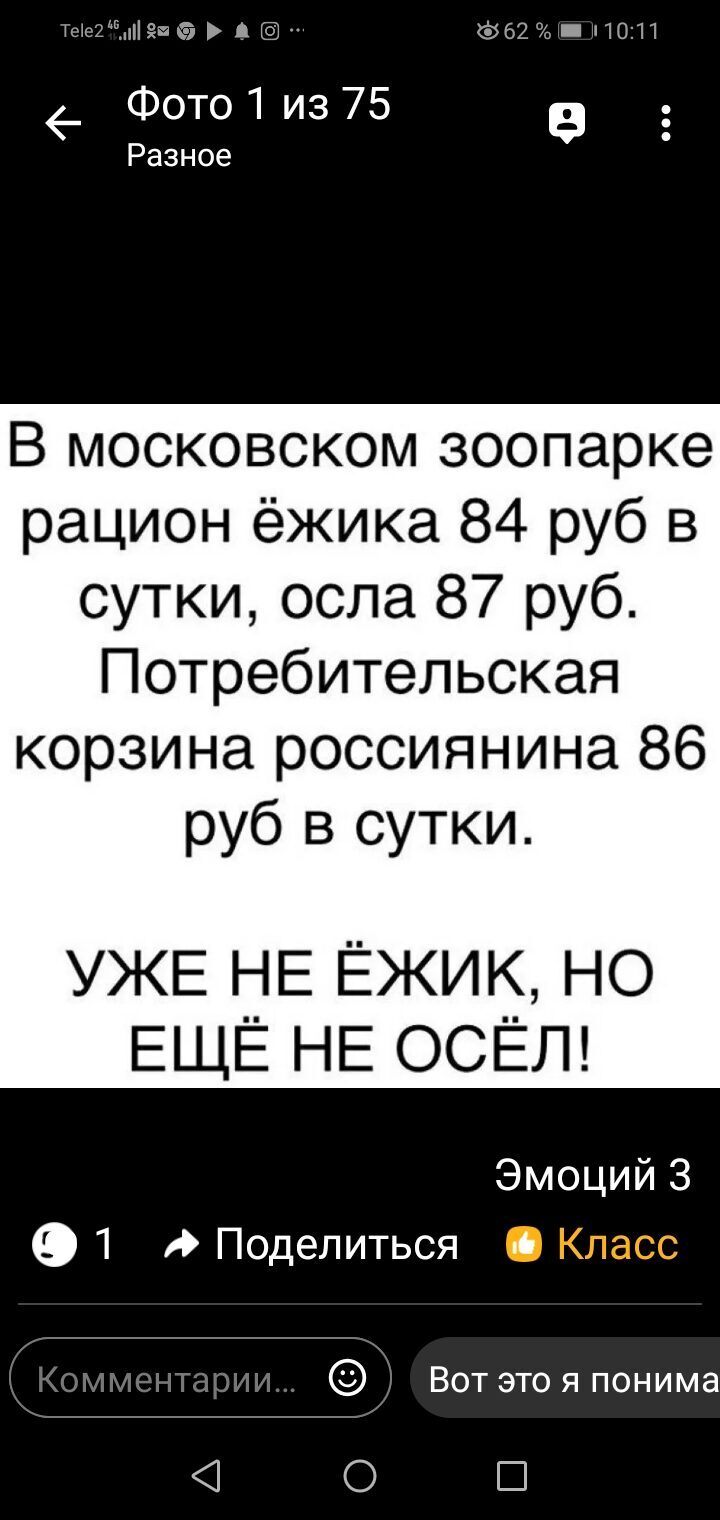 Рацион ежика и осла состоит исключительно из продовольственной корзины, и ежиков и ослов одевать и обувать не нужно, ремонт в квартире и коммуналку тоже платить им не нужно, мебель и бытовая техника тоже их не волнует, на лекарство дополнительные средства выделяются, при необходимости. Да и на похороны деньги им собирать нет необходимости. Вот и разница у нас в пользу ослов и ежиков!