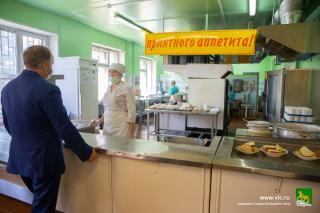В ходе проверки в школе № 2 глава города выяснил у поваров, сколько накормлено детей, есть ли блюда на выбор, много ли выбрасывается в бак с отходами.