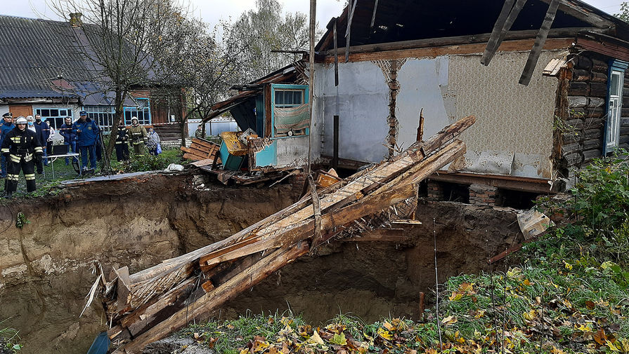 Глубокая яма образовалась на месте частного дома в Брянской области, в котором проживали две женщины. Одну из них пока так и не нашли.