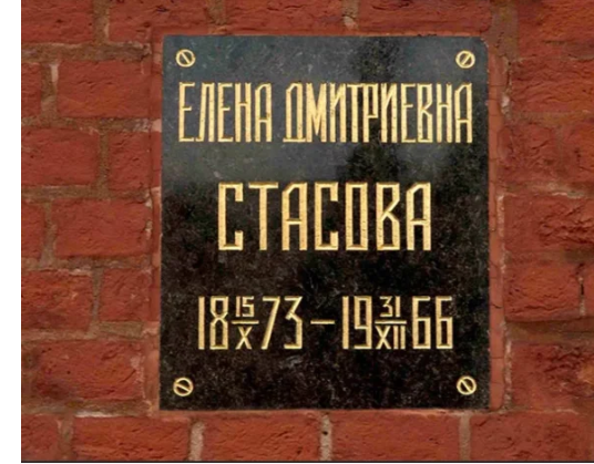 Отец: Стасов Дмитрий Васильевич [20.1 (1.2). 1828, Петербург,-28.4.1918, там же], художественный критик, общественный деятель, адвокат. Одна из ключевых фигур культурной жизни России. Окончил Училище правоведения (1847) в Петербурге, до 1861 служил в Сенате. В 1858 организовал юридич. Кружок, из которого вышли некоторые деятели судебной реформы 1864. Был одним из организаторов и директоров Рус. музыкального об-ва (1859). В годы революционной ситуации 1859-1861 Стасов близок к революц. Демократам. В 1859 содействовал встрече H. Г. Чернышевского и А. И. Герцена в Лондоне. С 1866 занимался адвокатурой, был первым пред. Петерб. Совета присяжных поверенных. Выступал защитником на политических процессах по делам ишутинцев, нечаевцев, И. M. Ковальского, на "процессе 193-х", "процессе 17-ти". Находился под секретным надзором полиции, подвергался арестам в 1861 и 1879. В кон. 19 - нач. 20 вв. помогал в революционной деятельности своей дочери E. Д. Стасовой. В квартире Стасова в июне - июле 1917 скрывался В. И. Ленин.