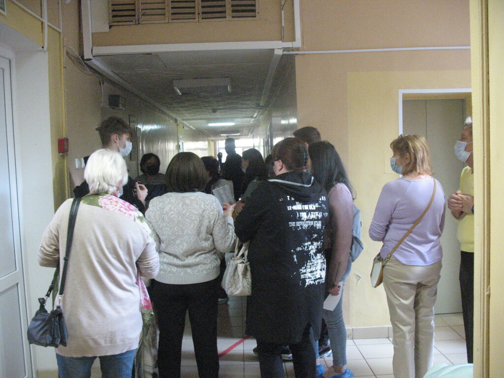 Ну Вы ж видите - Королёв, ну очень ближнее Подмосковье. Чтобы сдать обычные, назначенные терапевтом анализы, приходится с толпой пообщаться. Смотрите - дистанция соблюдается идеально... при закрытых окнах... Здесь люди и с талонами, и без талонов, в масках и без них и это уже конец приема - поздно сфотографировать сообразила, толпа рассосалась. А в четверг, 16.10.20 довелось посидеть, имея талон на определенное время, в очереди к завотделением. Вот именно там, в этой очереди и сидели люди "отпускники" за талонами на Ковид. У нас с ковид диагностикой вообще какие то чудеса. Сын отпуск просидел дома, а за 10 дней до выхода на работу не смог в нашей поликлинике сдать анализы на ковид, ответ был один - идите сдавайте платно, у нас нет материалов для забора анализов... Пришлось через Госуслуги разыскивать поликлиники в которых эти анализы можно было сдать. Ковид, в результате сдавал в одной, не нашей, поликлинике, а на антитела через 5 дней в другой... и тоже не в нашей...