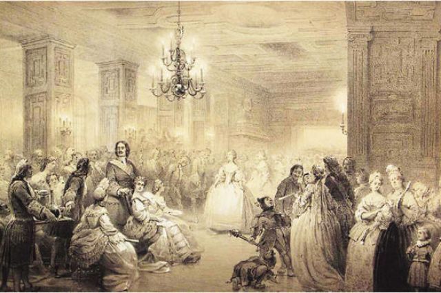 Ассамблея при Петре I. 1861. Неизвестный литограф по рисунку А.И.Шарлеман.
