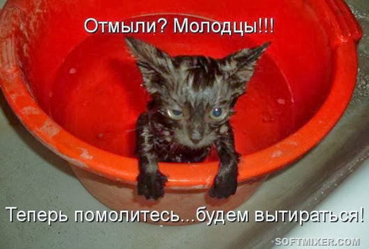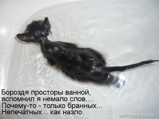 И вот наступает день, когда хозяин вынужден отбросить все наукообразные иллюзии и честно сказать самому себе: "Это животное пахнет, как носки командировочного". И вот, когда этот день настанет в вашем доме, как он настал в свое время в моем, прежде, чем брать кота под мышку и нести его в ванну, вспомните о моем опыте.