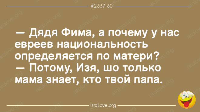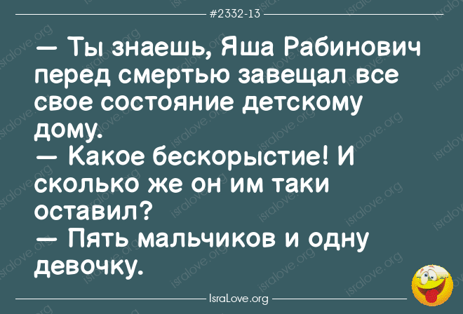 -АБРАМ, Я СЛЫШАЛ, ТЫ РАЗВЕЛСЯ УЖЕ В ЧЕТВЕРТЫЙ РАЗ. НЕУЖЕЛИ ВСЕ ЖЕНЩИНЫ ТАКИЕ ПРИВЕРЕДЛИВЫЕ?