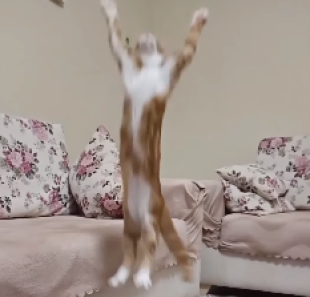 Кот прыгает за мячиком