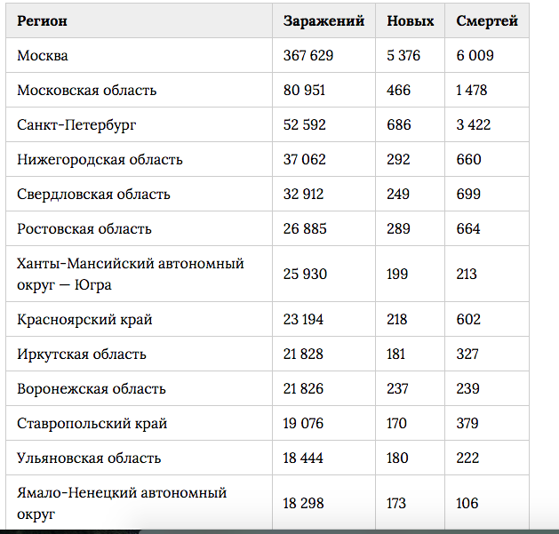Статистика коронавируса по регионам России на 20 октября 2020 года