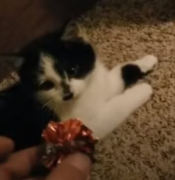 Милый котенок играет с хозяином