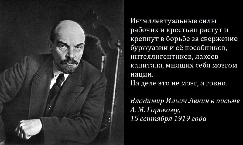 Как похоже на наше время. Естественно, Ленин, и русские классики не имели в виду всю интеллигенцию (врачи, юристы, учителя и т.п.), а ту, паразитирующую, без определенного рода деятельности, существование которой, сводится только к презрению к собственной стране, собственному народу, отечественной истории. Подробнее ➤
