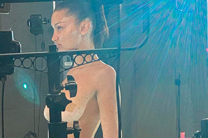 24-летняя манекенщица попозировала топлес в белых трусах, стоя в окружении световых ламп. Ее волосы собраны в высокий хвост. На размещенных кадрах видно, что модель одновременно снимают со всех сторон несколько фотоаппаратов. Хадид также запечатлела себя в объектив одной из камер, прикрыв обнаженную грудь эмодзи в виде черного сердца.