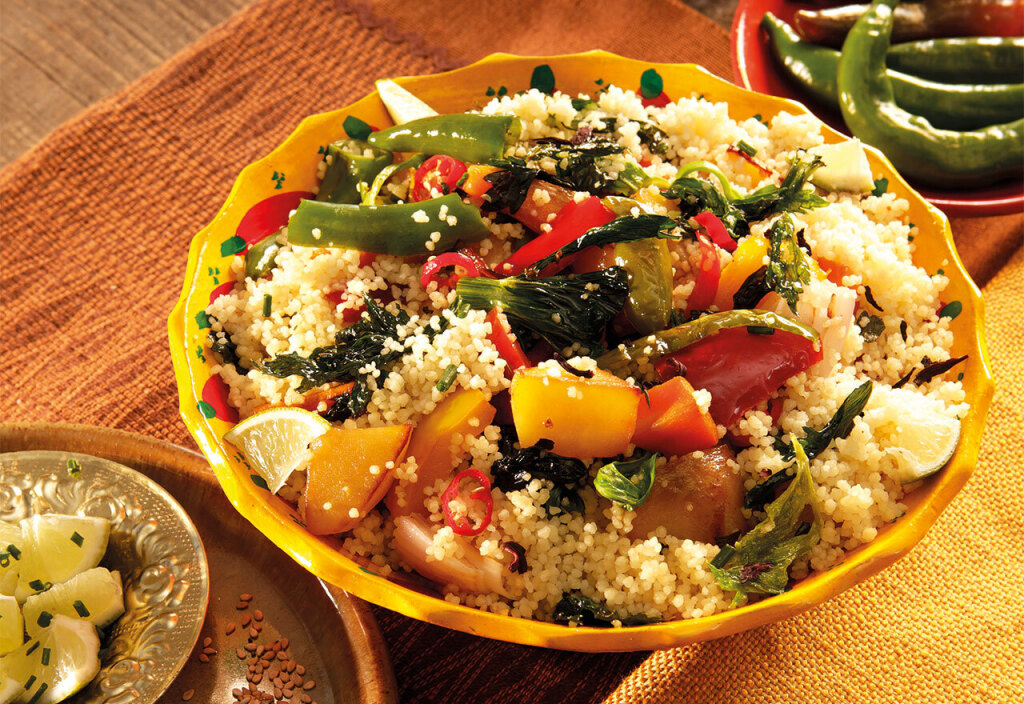 Кус-кус готовят из крупы кус-кус, мяса, овощей и нута. Традиционно добавляют 11 видов овощей, но иногда хозяйки упрощают задачу и добавляют 3-4 вида овощей. По традиции едят кус-кус руками, лепят комок из каши и закидывают в рот. Но чаще, конечно же, едят ложкой. Это более эстетично и не приходится потом убирать кус-кус отовсюду.