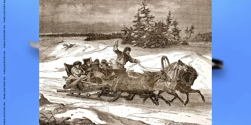 «Отъезд произошел в восемь часов вечера. Поезд состоял из трех повозок и одних саней. В первой повозке — дорожном купе — помещался император и генерал Коленкур, герцог Виченцский; мамелюк Рустан сидел на козлах.