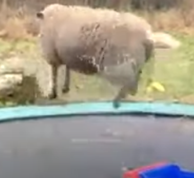 Овечка прыгает на батуте