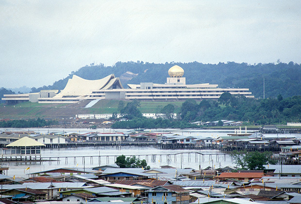 Бруней празднует обретение независимости от Великобритании, 1984 год. Вид на недавно построенный дворец султана Брунея Нурул-Иман