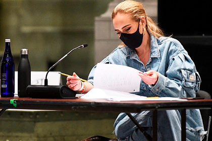 Папарацци запечатлели поп-исполнительницу за кулисами американского музыкально-юмористического шоу Saturday Night Live во время репетиции. На размещенном снимке знаменитость читает сценарий в черной защитной маске. На ней — рубашка из денима с корсетом бренда Natasha Zinko, основанного украинкой Наташей Зинько.