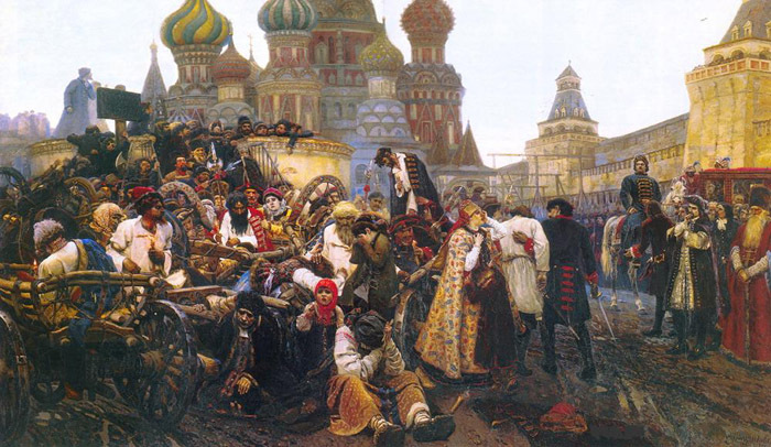 В апреле 1682 г. царь Федор умер. После его смерти боярское семейство Нарышкиных выдвинуло кандидатуру Петра, сына Алексея Михайловича от второго брака, а боярский клан Милославских болезненного царевича Ивана, рожденного в первом браке. На стороне Нарышкиных выступил патриарх Иоаким, опасавшийся воцарения энергичной Софии и ее фаворита, князя В. Голицына. Для избрания Петра было спешно организовано собрание «чинов» московского дворянства, крупных гостей купцов и старост «черных сотен и слобод».