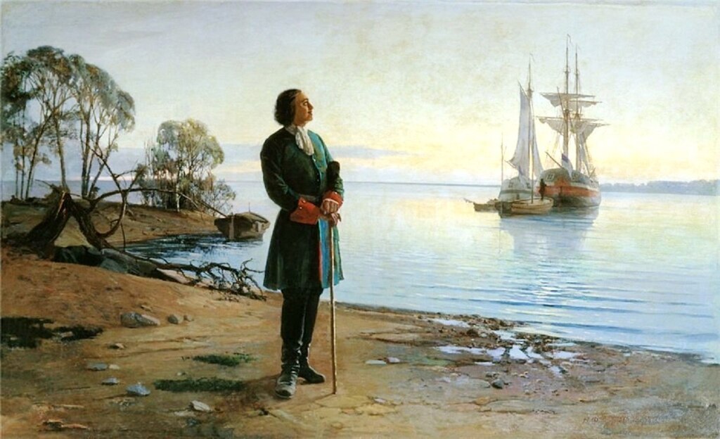В 1693 г. Петр отправился в Архангельск, где приказал строить корабли. Для развития внешнеполитических связей России он решился бороться за выход к Черному морю. В январе 1695 г. было объявлено о предстоящем походе на юг, командование возлагалось на боярина Б. Шереметева. В июне 1695 г. русские войска осадили Азов. Установив осаду крепости с суши, Петр вскоре убедился, что, не имея кораблей, взять Азов не удастся. Осада крепости была снята. Эта неудача убедила его в необходимости строительства флота, которое началось на р. Воронеж. К апрелю 1696 г. на воду спустили 2 корабля, 4 брандеры, 23 галеры и 1300 стругов. Во втором походе Азов был блокирован с моря и взят, для закрепления позиций на Азовском море сооружена крепость Таганрог.