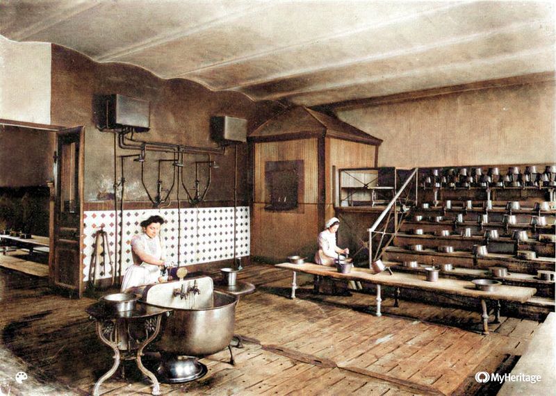 Да и весь быт в целом напоминал скорее кадетский корпус, чем заведение для дам. Общие «помывочные» комнаты, где время также регламентировали, а у входа барышень встречали учителя.