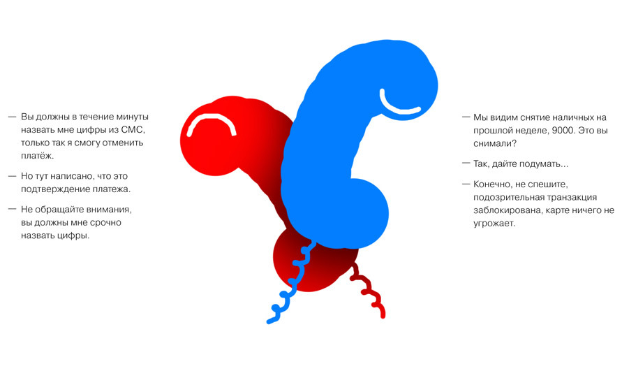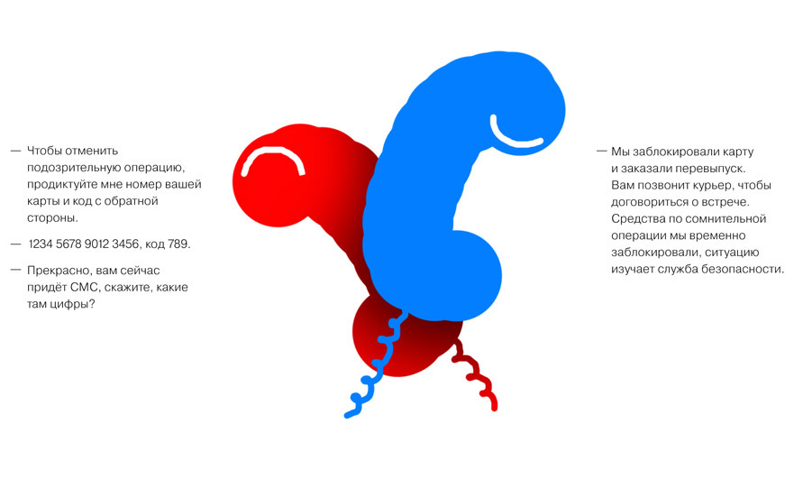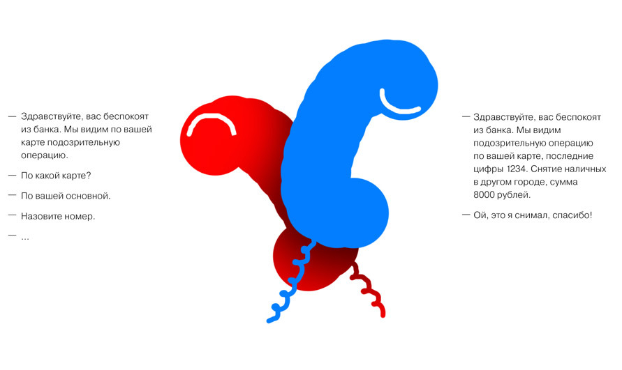 (Слева — мошенник, справа — банк)