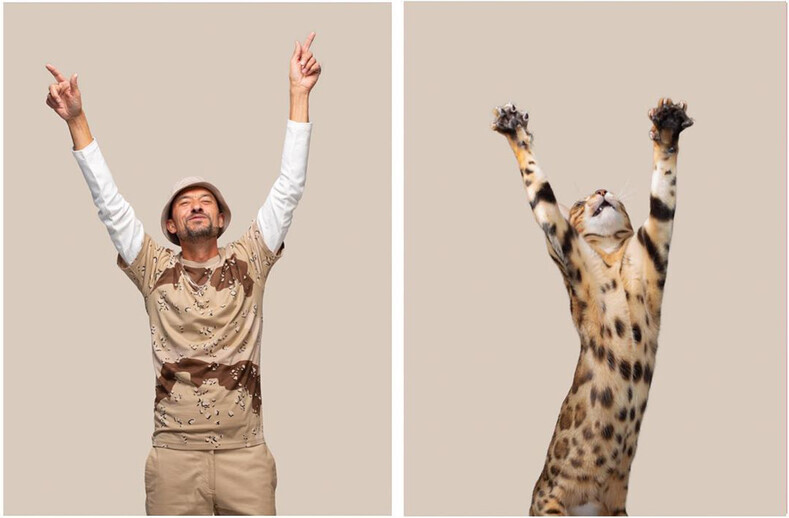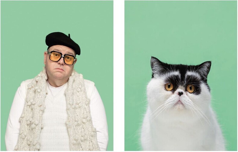 Британский фотограф животных Джеррард Гетингс уже делал серию снимков, на которых были невероятно похожие пары из людей и собак. Но в этот раз задача стала еще труднее. Ему предстояло работать с кошками, а они, как известно, не стремятся делать то, что от них хочет человек.