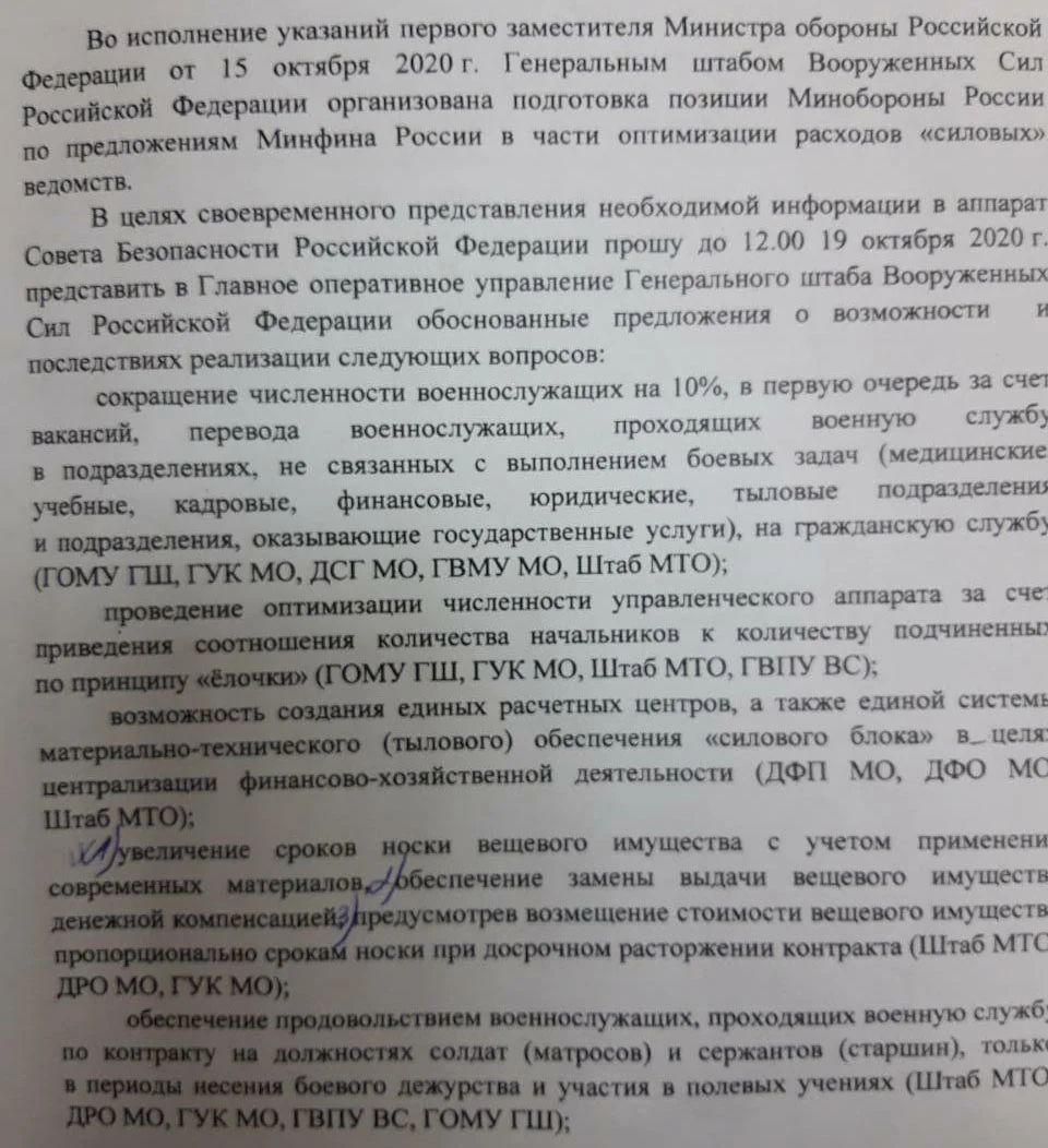Не успела закончиться одна неделя с инициативами Минфина по сокращению расходов на "силовиков", как следующая обозначила не менее шокирующие вести. В сеть просочились фотографии документов, которые стали тревожным звоночком для тысячи военнослужащих. А всё из-за того, что 10 % военнослужащих могут попасть под сокращение, а срок выслуги лет для выхода на пенсию может увеличиться на пять лет.