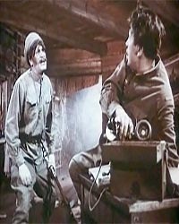 Шпион изо всех сил изображает, что рубильник заржавел и не поддается. Комиссар орет: