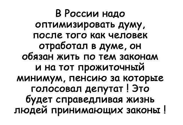 Посадить бы Путина и его депутатов на прожиточный минимум, как же замучили всю страну.. Обобрали людей. Эти подонки.. Ненавижу этих злодеев.