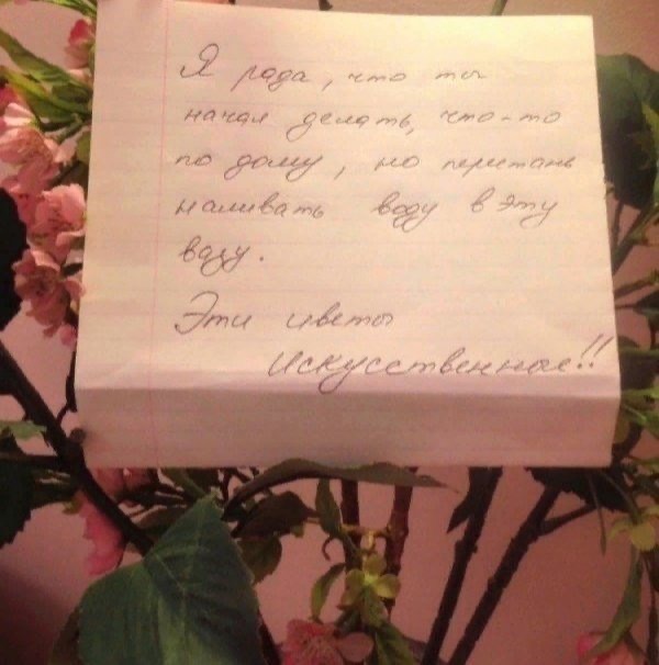 Обычные домашние записки, всем все понятно, а посторонним смешно. Тоже всегда писала, сейчас предпочитаю по мобильному.