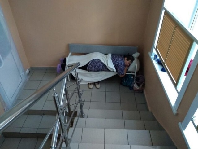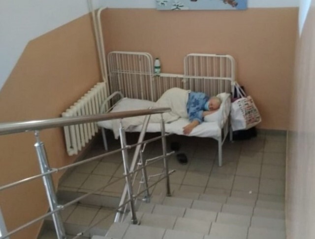 В новосибирской больнице пациентов с Covid-19 разместили на лестничных клетках.