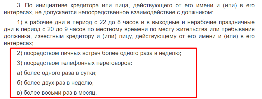- звонить, встречаться и направлять смс строго в пределах количества и временных промежутков, определенных законом;