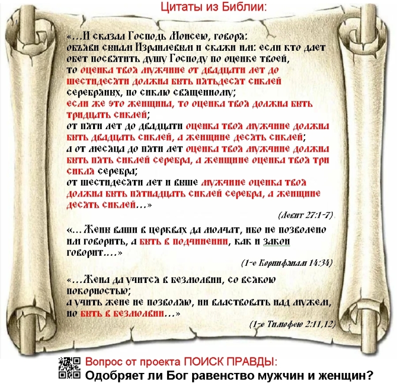 Как думаете - одобряет ли Бог равенство мужчин и женщин? www.9111.ru