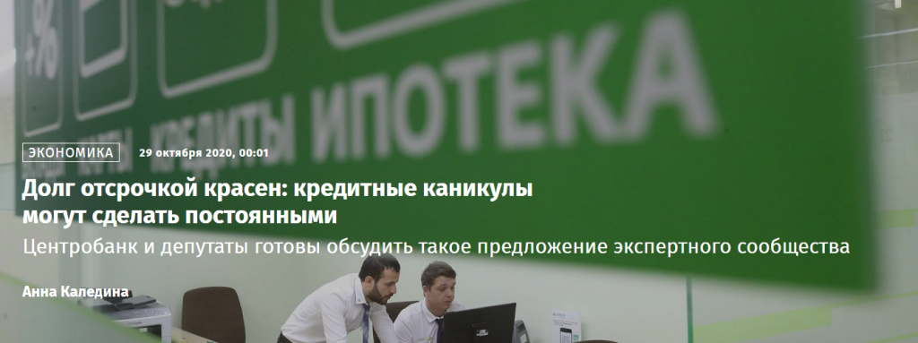 О необходимости сделать механизм кредитных каникул постоянным говорили и другие участники мероприятия. Необходимо создать постоянно действующий механизм реструктуризации по всем видам заимствований, который может применяться по необходимости, сказал «Известиям» директор по маркетингу Национального бюро кредитных историй (НБКИ) Алексей Волков.