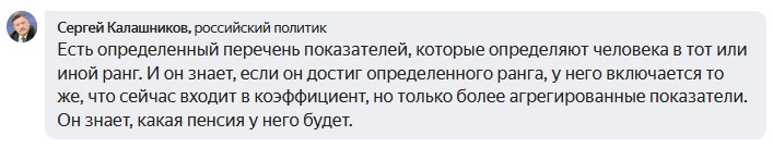 Депутат Государственной думы, первый заместитель председателя комитета ГД по экономической политике Сергей Вячеславович Калашников предложил ввести при начислении пенсии «сортировку» граждан на пенсионеров с 1-го по 10-й ранг.