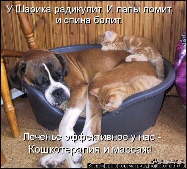 Во-первых, вы можете взять своего любимого питомца, потискать его, погладить и приложить к больному месту.