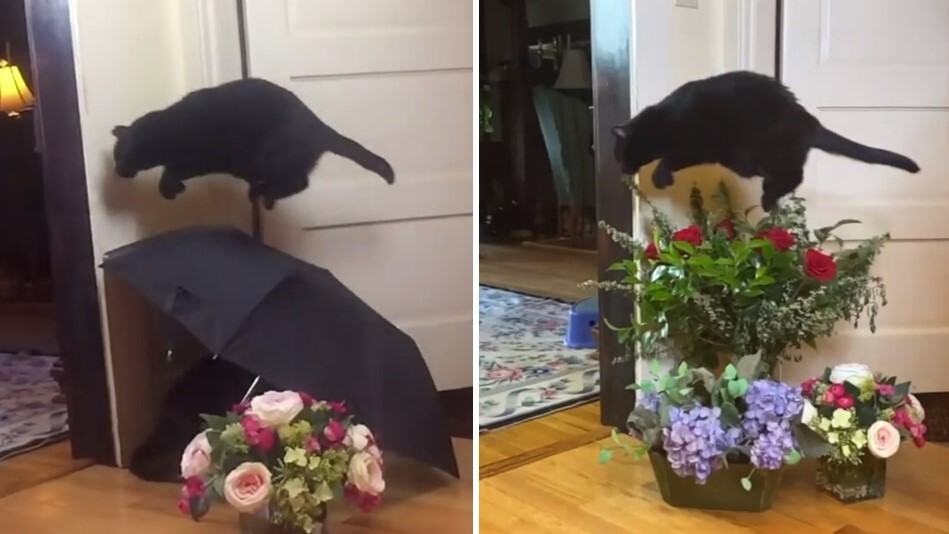 Жительница американского штата Орегон уже много лет воспитывает двух очаровательных черных кошек, которых она когда-то взяла из приюта. Одну зовут Нарцисс, и она очень мила и добра, а вторую зовут Попрыгунчик, и она, как это видно из клички, обожает прыгать, пишет Bored Panda.