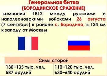 Бородинское сражение началось 26 августа 1812 года ранним утром в 5 часов 30 минут. Как и планировалось, главный удар был нанесен французами по левому флагу обороны русской армии.