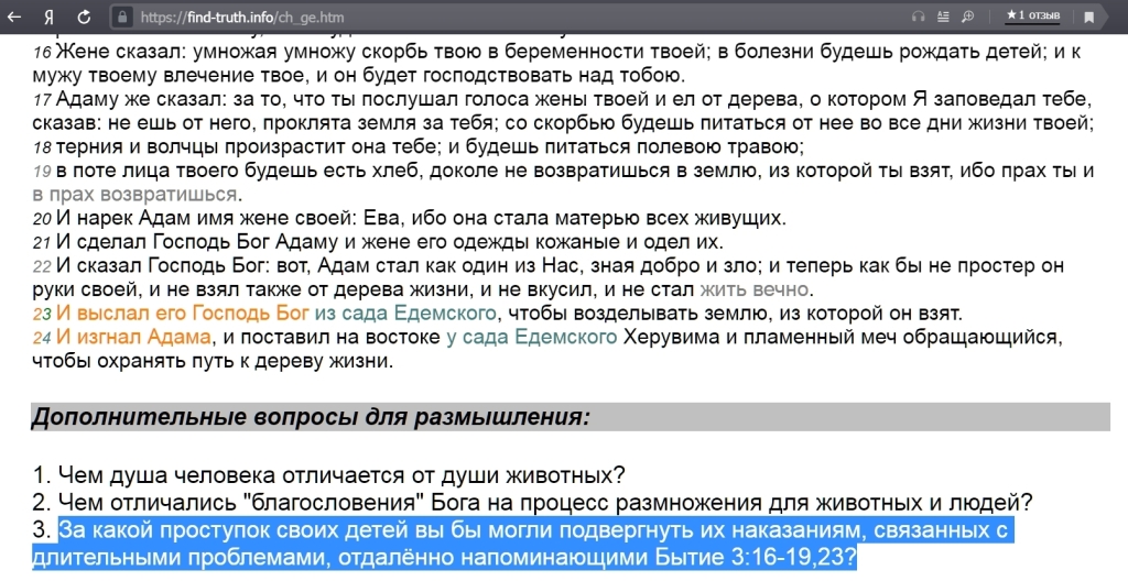 Посмотрите такую ссылку - https://find-truth.info/ch_ge.htm и обратите внимание на Бытие 3:16-19.