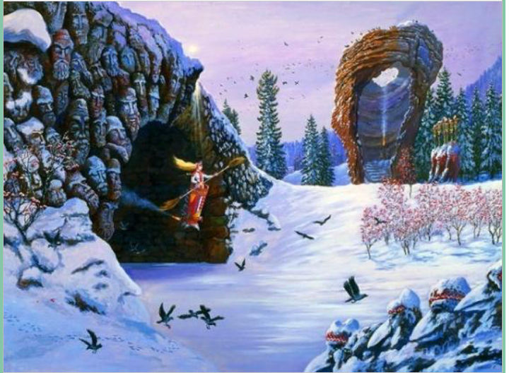 Давным-давно, а может и недавно, наши предки называли бабу-ягу Бабой Йогой или Йогиней-Матушкой. Она была вечнопрекрасная, любящая, добросердечная богиня-покровительница детей сирот и детей вообще. Она странствовала по Мидгард-Земле то на огенной Небесной колеснице (вайтмана), то верхом на коне по всем землям, на которых жили Роды Великой Расы и потомки Рода Небесного, собирая безпризорных детей-сирот по градам ивесям.