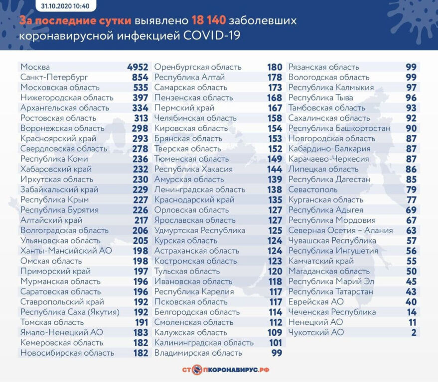 Коронавирус в России — ситуация на 31 октября 2020. Статистика на сегодня