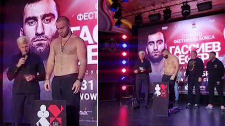 Накануне спортсмены прошли процедуру взвешивания. Вес Железного Осетина перед боем составил 104,6 кг, а вес Албанского Тайсона - 102,8 кг. Боксеры также провели дуэль взглядов и пожали друг другу руки.