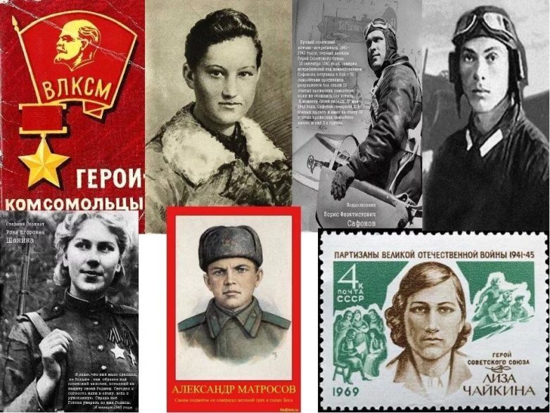 Герои-комсомольцы Зоя Космодемьянская, Любовь Шевцова, Олег Кошевой, Александр Матросов, Лиза Чайкина и многие тысячи других были и остаются беспримерными символами любви к своей стране..