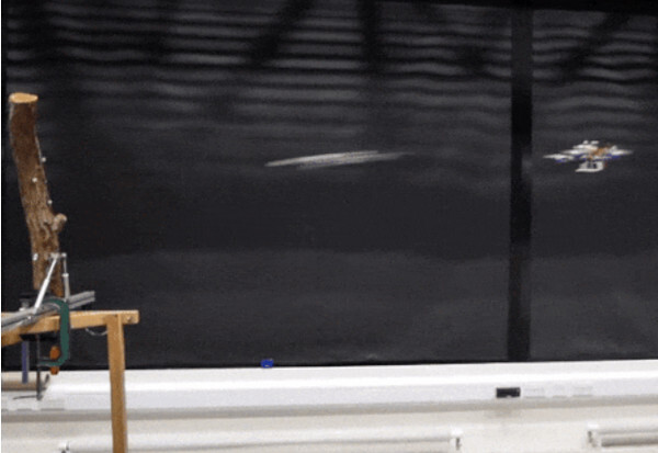 Инженеры под руководством Микро Ковача (Mirko Kovac) из Имперского колледжа Лондона и Швейцарского федерального исследовательского института материаловедения и технологий создали дрон, который может прицельно выстреливать дротиком с датчиком и закреплять его на деревьях или других объектах. В нем установлен пусковой механизм для одного дротика. Он состоит из основной сжатой пружины, хранящей энергию для запуска, и пружины из сплава с памятью формы, которая при подаче тока отодвигает крючок, сдерживающий основную пружину. Дротик с датчиком и хвостовым оперением весит 30 граммов и может лететь на 3-4 метра.