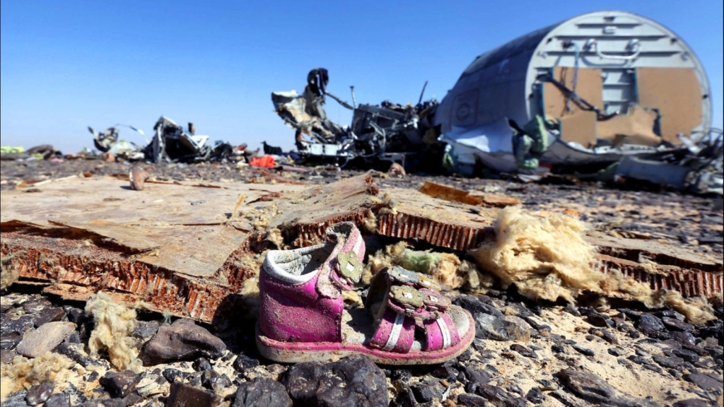 По версии наших российских спецслужбы, террористы пронесли бомбу массой не более 1 кг в тротиловом эквиваленте в отсек негабаритного багажа самолета А-321 компании «Когалымавиа» и заложили детскими колясками и плетеными сувенирами пассажиров. Взрыв погремел в хвостовой части самолёта на высоте 9 450 метров. Обломки самолета разбросало на 13 километров, а площадь их обнаружения составила 30 км².