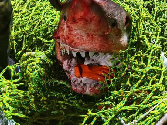 Рыбаки возле Сахалина выловили огромную жуткую акулу-людоеда