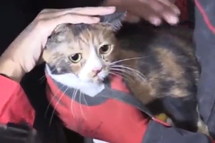 Спасатели сломали стены и удалили обломки, после чего извлекли кошку и передали ее владельцу. Оказалось, что животное зовут «Умут», что по-турецки значит «Надежда».