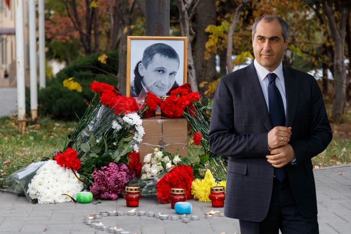 Коллеги скончавшегося волгоградца собрали стихийный мемориал у входа в банк. Разложив свечи, цветы и фотографии Романа, они потребовали честного расследования и привлечения к ответственности сестры Арсена Мелконяна.